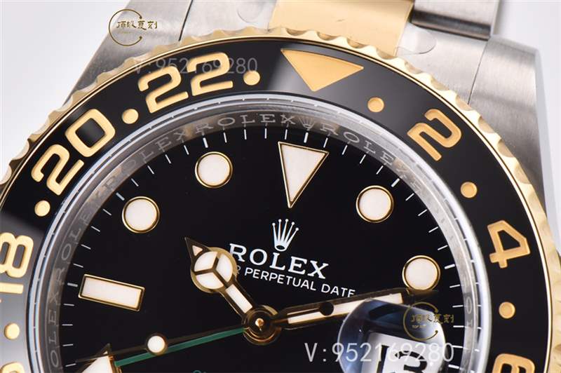 表殼外觀,全部采用904L殼身,完美還原gmt整個殼形,修正gmt轉圈手感。皇冠 把頭部分也展現出,浮雕皇冠效果。采用和原版一致的3186機芯。 底蓋部分,也和原版一致,拋光,拉絲,以及表殼底部拉絲。底蓋與表殼的契合程 度,幾乎一致。把頭與表殼縫隙可以自行對比。內影部分,全系列全部修正字母 “R”的尾巴,微微凸起。如果真的要吹毛求疵,那就是內影部分,底紋沒有原版細膩,受限于國內激光技術以及設備。