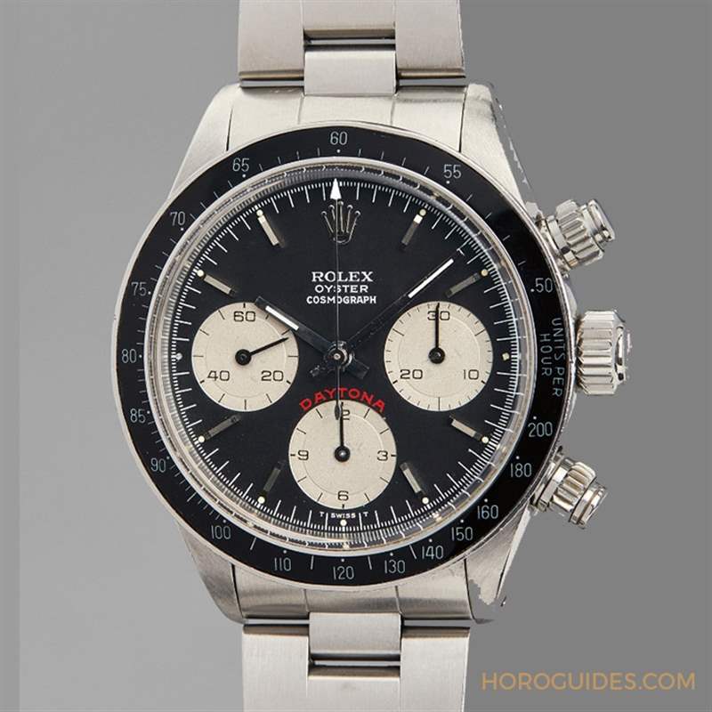由Paul Newman所擁有的此款勞力士Daytona 6263“Big Red”,面盤并不是「Paul Newman樣式」,6點鐘小秒盤上有著DAYTONA紅字,是1983年妻子送給Paul Newman的結婚25周年禮物,為Paul Newman佩戴最久的腕表(1983~2008年),腕表底蓋刻著「Drive slowly Joanne」,展現(xiàn)妻子對Paul Newman的關心。「Paul Newman的Dayton」這個關鍵字,喚起了大家對’17年「Paul Newman的Paul Newman」的記憶:在拍賣會以1,775萬美金天價榮登當時的世界最貴腕表,而此款雖未打破紀錄,但也是非常驚人的價格。