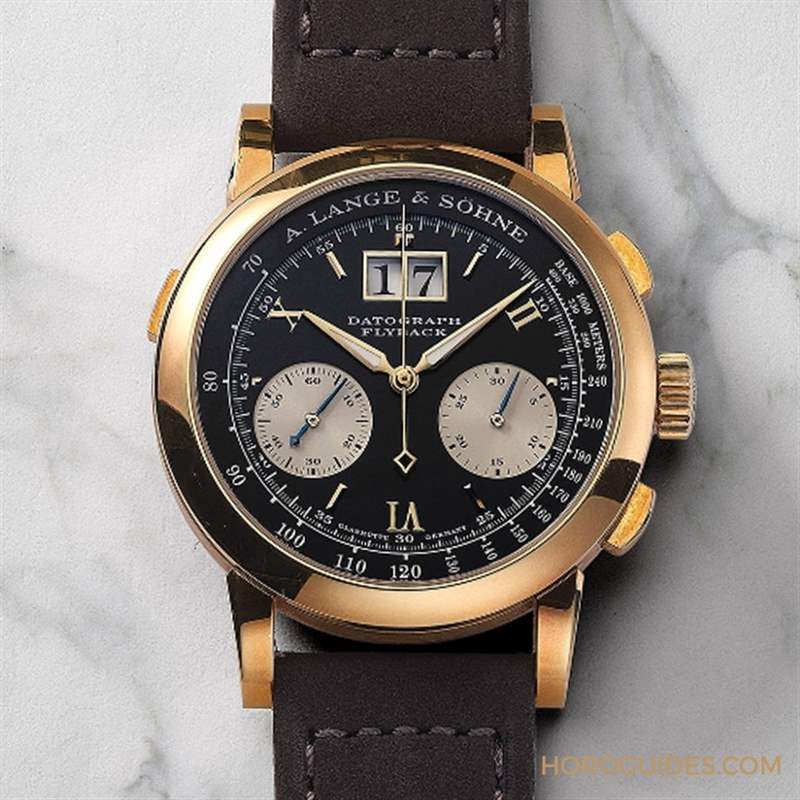 朗格的Datograph在1999年問世,最初推出鉑金、其次為玫瑰金,而此款黃金款式(型號403.041)被認為是最「神秘」的版本,據(jù)拍賣行資料,此款是在2007年的SIHH現(xiàn)身、2009年停產,大約生產僅30只,并從未出現(xiàn)在產品目錄上。黃金配備黑色面盤的Datograph在收藏家之間被稱為「Yellow Jacket」,因為顏色與一種出現(xiàn)在歐洲與北美的黃蜂相近而命名,當初是做為測試市場反應的版本而推出。此次以176,400瑞郎成交,約為線上款式零售價的四倍。